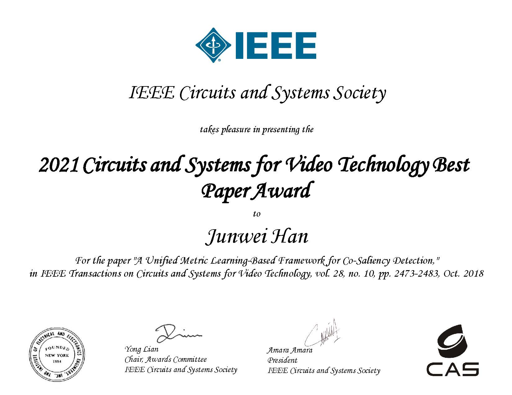 该奖项由IEEE CASS(IEEE电路与系统学会)设立,是多媒体领域最有影响的论文奖项之一,综合考虑论文的原创性、实用性和影响力,从过去三年发表在IEEE TCSVT上的900余篇论文中评选而出,每年最多有1篇论文入选(有时空缺)。亚洲av