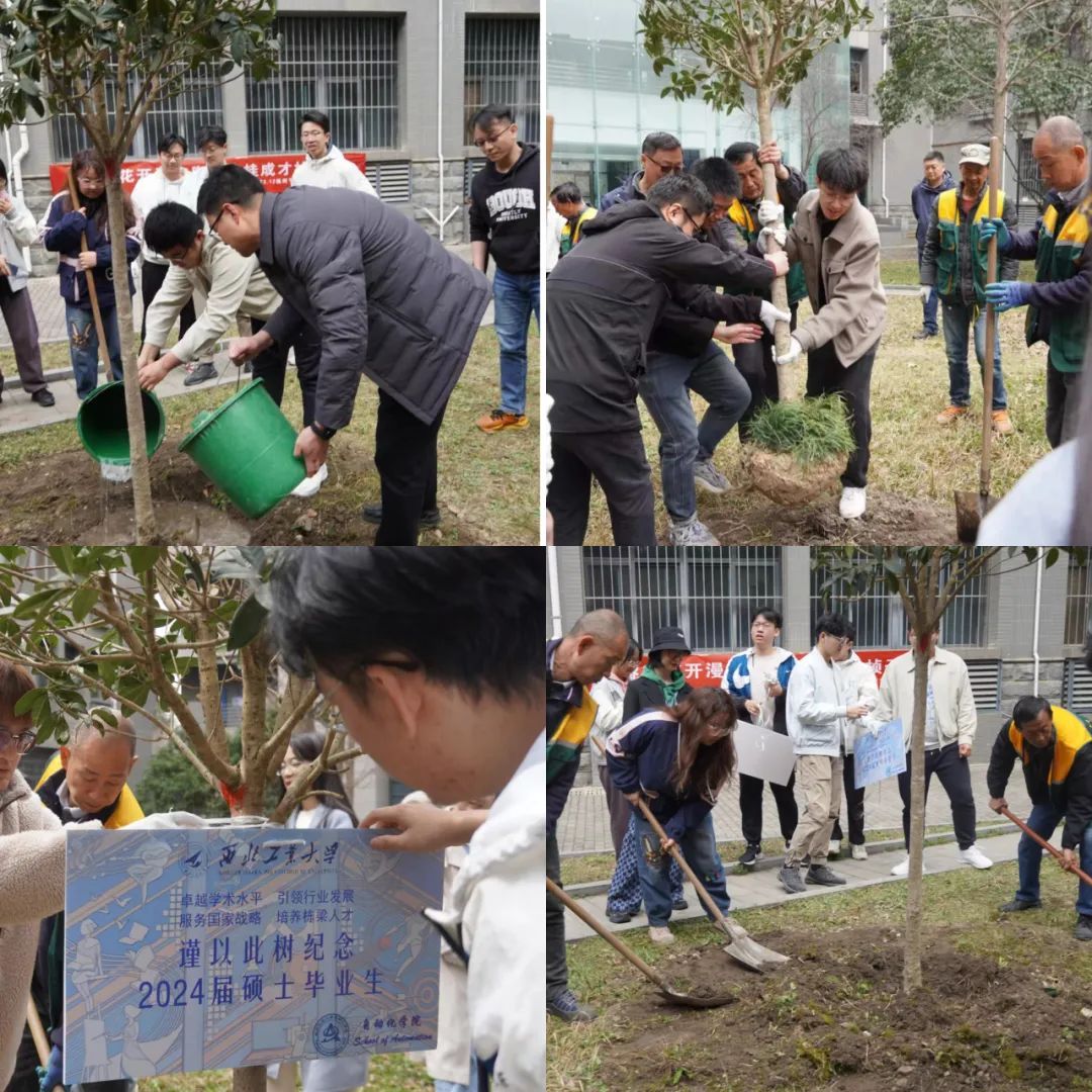 党委副书记易正阳、后勤集团物业服务中心主任羽渊,2024届本科生和研究生代表、辅导员等参加了植树活动。